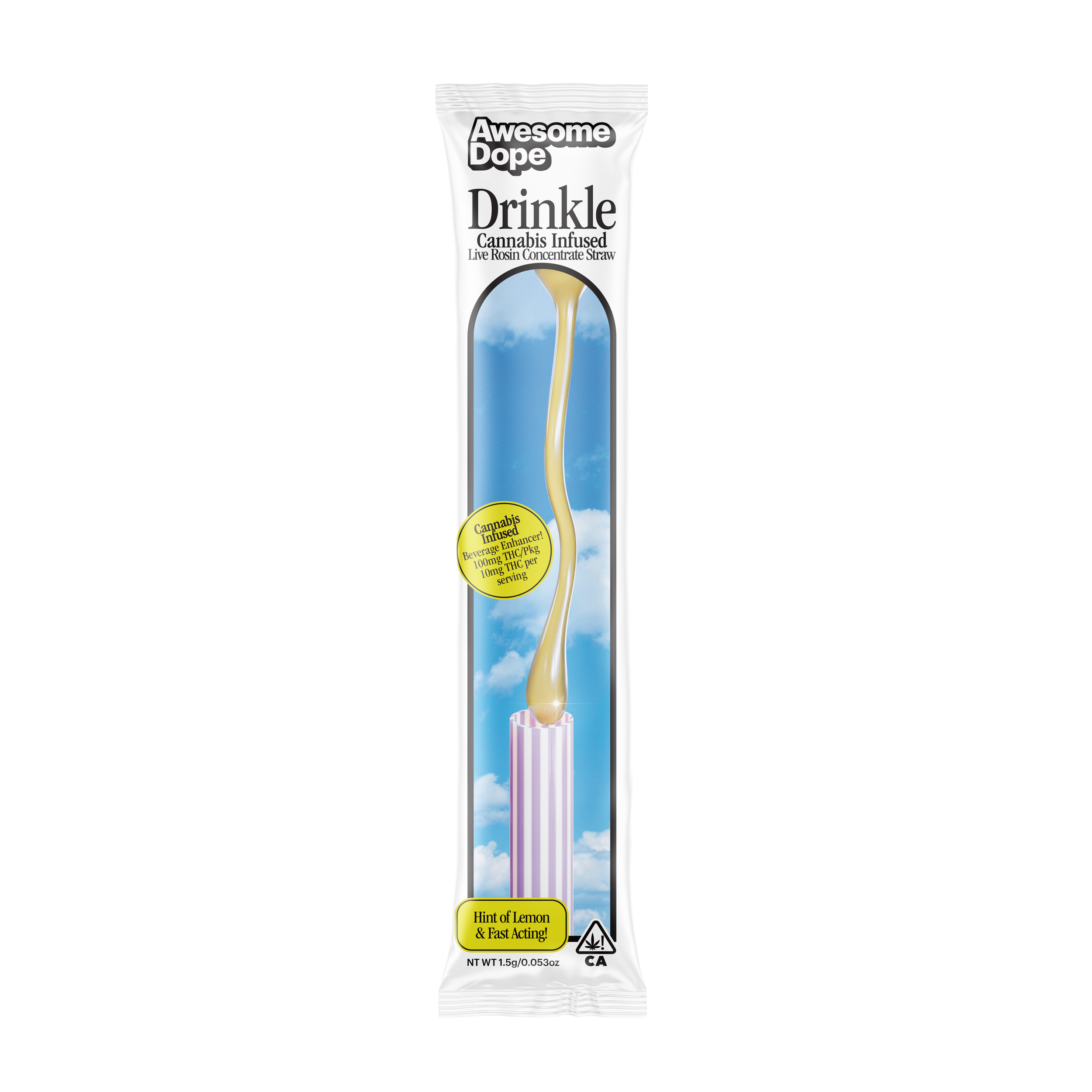First Place Winner at the 2024 Emerald Cup and MJBowl All Star Winner! Say hello to our new live-rosin concentrate straw. Available in Sativa, Indica and Hybrid, It’s fast-acting and delicious with a hint of lemon and a potent dose of THC. Tastes great in cocktails, mocktails, seltzers, or even a glass of ice water. Place it in your drink, wait one minute, and lift off. Works perfectly by itself or as a supercharger for other cannabis beverages. Available in 100mg single packs and 25mg multipacks.